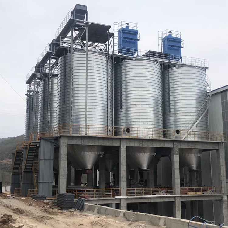 接收与清理设置在筒仓中央该形式筒仓一般采用对称排列,提升机井架固定,经过提升后的物料通过仓顶溜管进人筒仓。这种形式省去了仓顶输送设备和上通廊,从而节省了建造费用,缩短了建造工期。对于贮存时间要求较长的大型粮库,则应根据物料的流向、场地情况、工艺要求等合理地配置投料口、工作塔、烘干塔及河源钢板仓的位置。国华钢板仓介绍了这几种常见的进料形式,实际中可将各种形式相互组合,相互渗透,根据实际情况合理搭配,灵活选用。